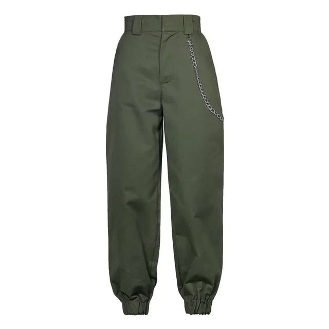 Gender: WomenMaterial: Polyester,CottonFit Type: LooseFabric Type: BroadclothClosure Type: Zipper FlyPattern Type: SolidWaist Type: HighFront Style: FlatPant Style: Cargo Pants
